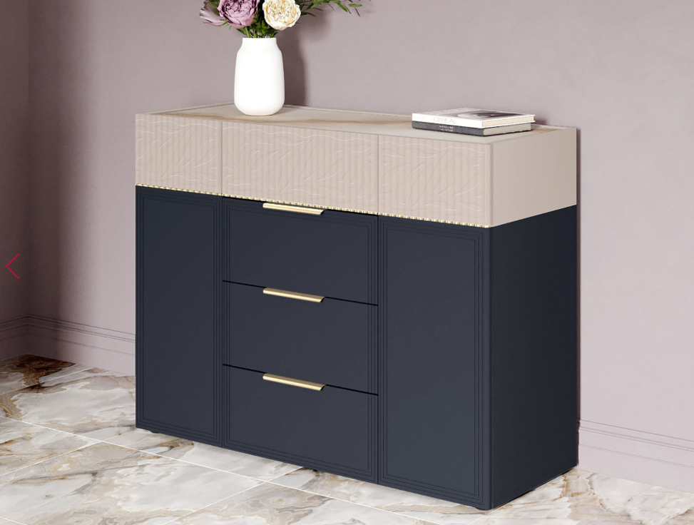 Вместительные ящики комода оснащены системой плавного закрывания скрытого монтажа, благодаря чему модулем приятно и удобно пользоваться.