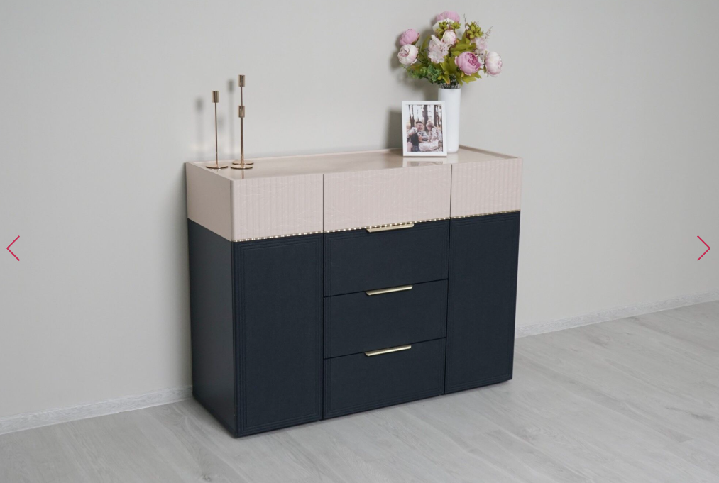 Фасады ящиков выполнены из МДФ толщиной 18 мм, корпус – из ЛДСП толщиной 16 мм, топ комода – из ЛДСП 22 мм.