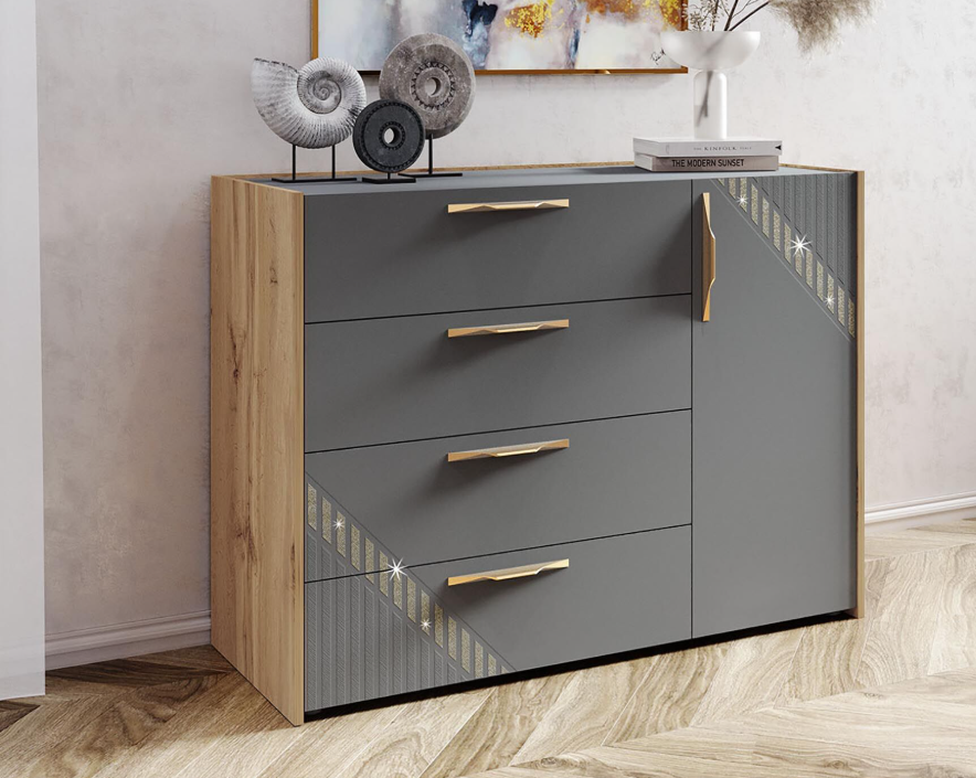 Комод можно использовать как отдельный предмет мебели, так и в сочетании с другими модулями коллекции.