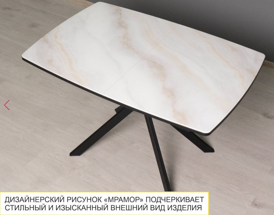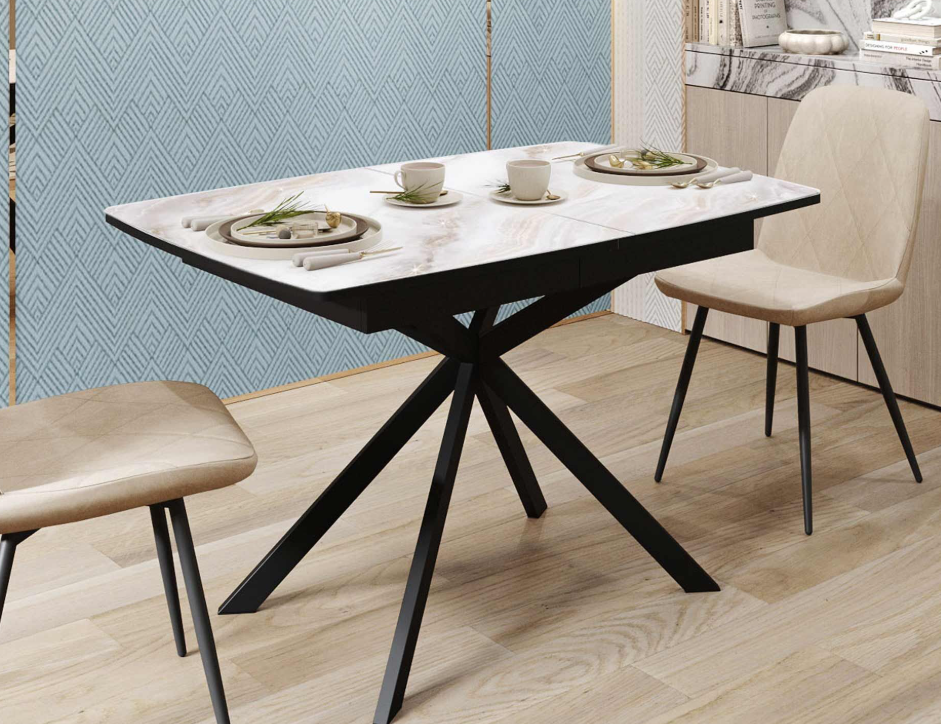 Матовые металлические опоры в контрастном черном цвете придают модели современный характер и визуальную динамику, делая стол стильным акцентом в интерьере.