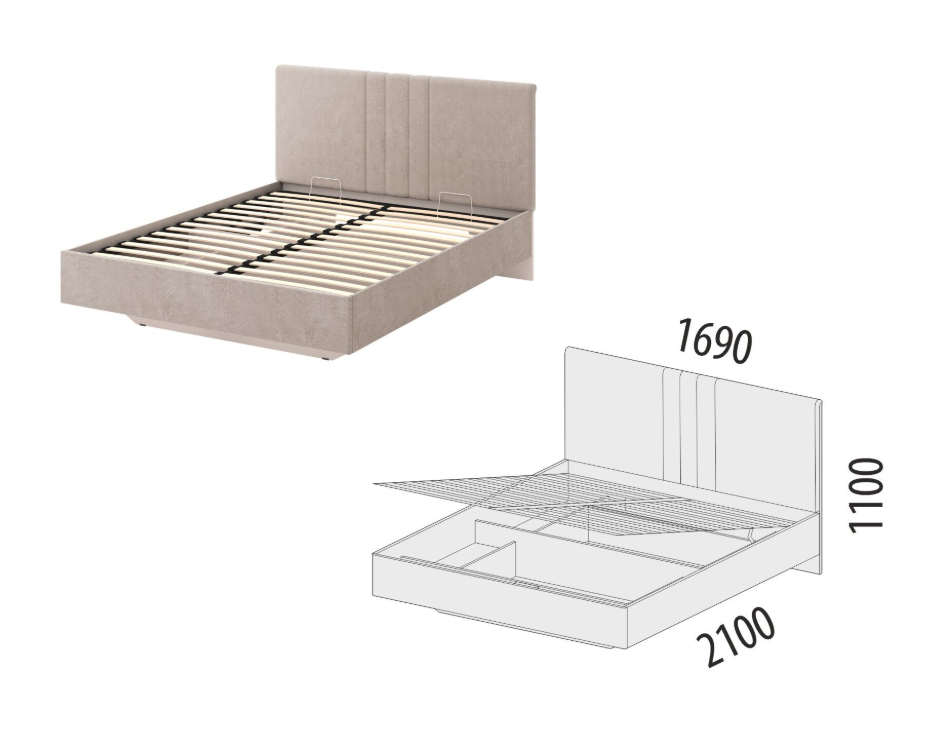 В основании кровати предусмотрен вместительный короб для удобного хранения одеял, подушек и других вещей.