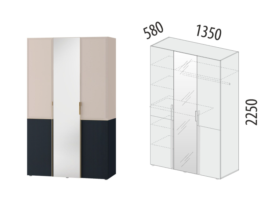 Акцентные длинные ручки «в пол» подчеркивают вертикальные линии фасадов и придают изделию особый шик и роскошь.