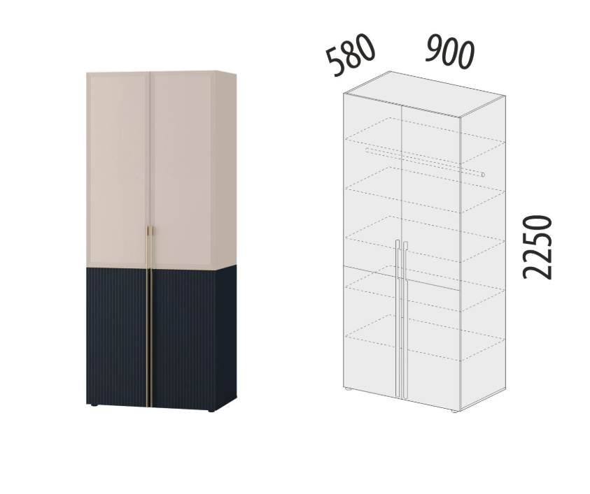 Акцентные длинные ручки «в пол» подчеркивают вертикальные линии фасадов и придают изделию особый шик и роскошь.
