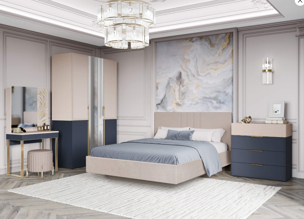 Кровать и пуф обтянуты прочной, износостойкой и приятной на ощупь тканью. Декоративная отстрочка добавляет выразительности и формирует элегантный рельеф. Актуальный цвет «Даллас Кашемир» сочетает в себе теплоту и гармонию.